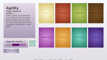 A skill system for Ren'Py that allows you to easily define and display information about various skills as well as level them up and perform skill checks! The zip folder contains two folders with placeholder images used in the code for screens, a .rpy file with all the code and a readme file. You should begin with reading the readme file first as it contains plenty useful information about setup and usage of the code.